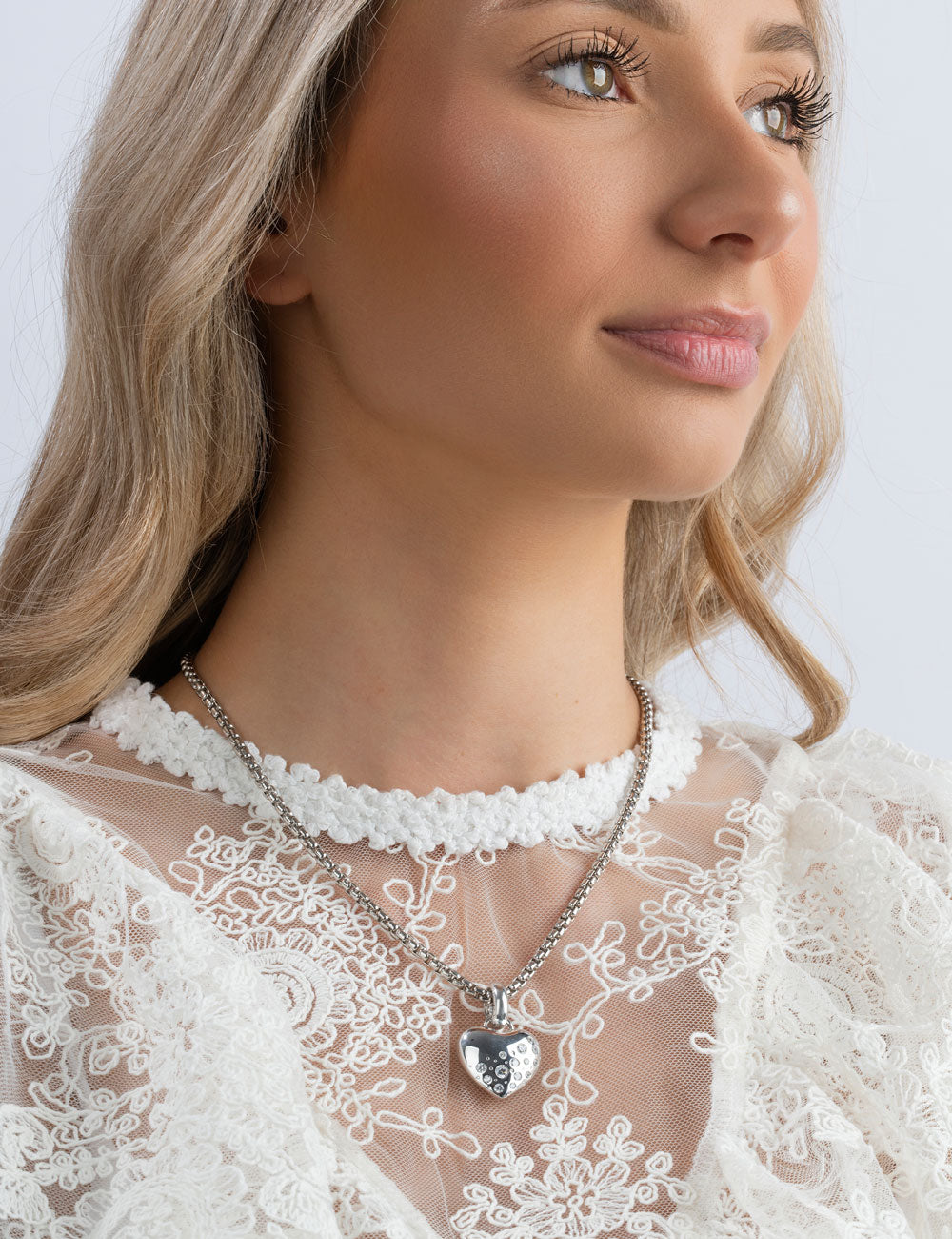 Unser Schmuckset aus Venezianerkette und Herz-Anhänger bringt zeitlose Eleganz zum Ausdruck und verleiht jedem Look einen Hauch von strahlender Raffinesse.